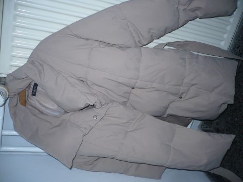 Materiell sehr gut erhaltene lange Daunen-bestückte Damen-Winterjacke (Bekleidungsgröße: 40, 42) zu verschenken. Die Jacke hat seitlich links und rechts eine mit jeweils einem Reißverschluss zu schließende geräumige Außentasche.